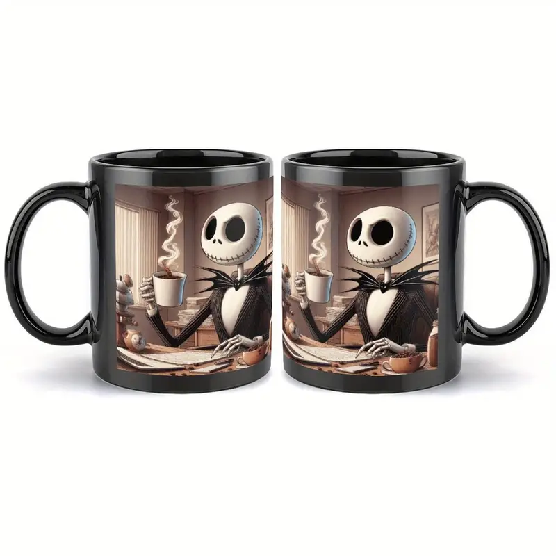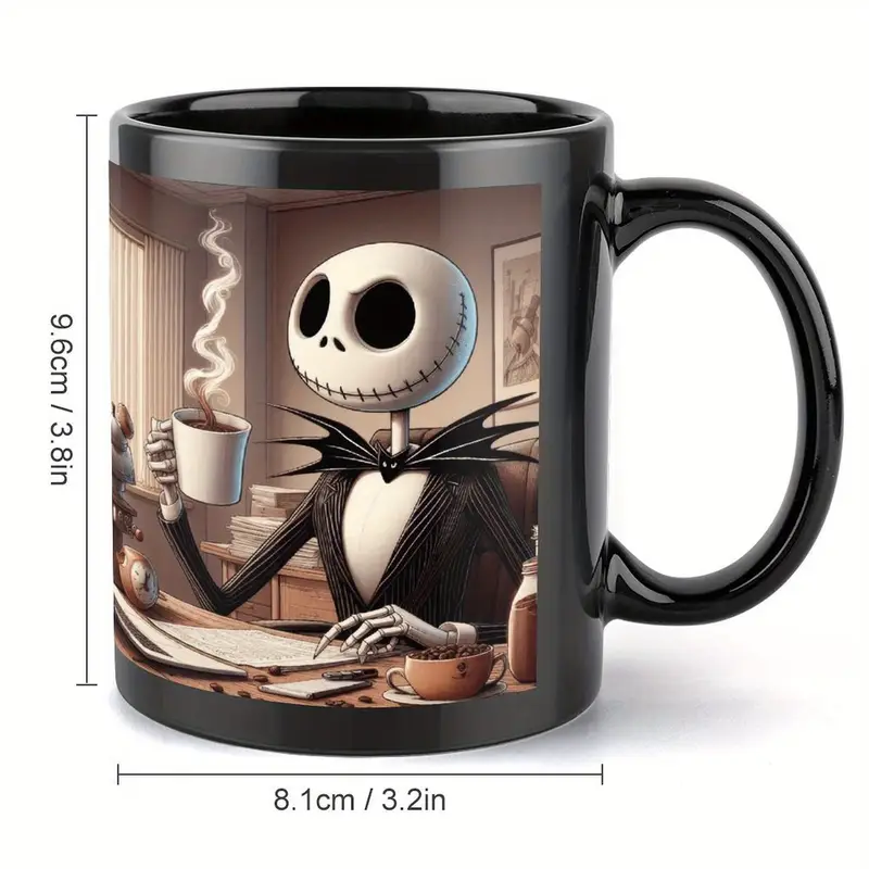 Diseño de Jack Skellington, Taza de Porcelana Duradera y Apta para Microondas para Café, Té, Jugo. Regalo Perfecto para Parejas, Navidad, Acción de Gracias, Halloween, Cumpleaños, Regalo para Fans de Cine | Diseño Caprichoso de la Taza | Taza de Cerámica Duradera, Copa Disney